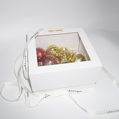 Custom Luxe Kerst Geschenkdoos Met Doorzichtige Pvc Raam Deksel Basis Papieren Dozen Voor Verpakking Feest Bruiloft Gunsten