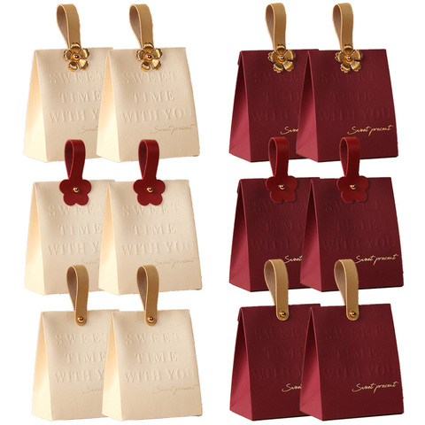 Custom Mooie Luxe Bruiloft Gunst Verpakking Kleine Leren Handvat Papieren Zak Logo Voor Gasten Voor Halloween Feestjes Deur Geschenken